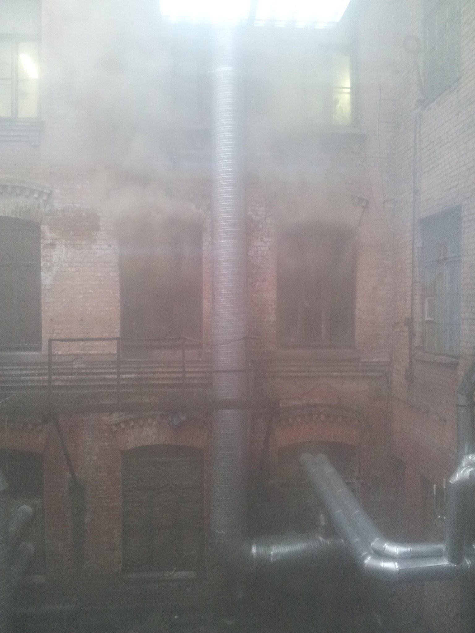 Оказалось что у нас что-то горит, причём не плохо так горит, в соседнем здании (по некоторым данным типография). И выглядит это приблизительно вот так: