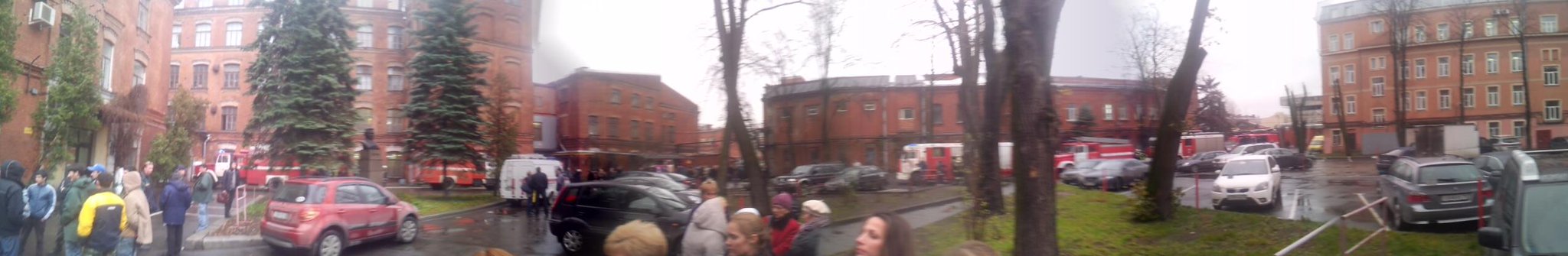 Ну ничего :) Сидим работаем дальше. Пожарные всё приывают, уже даже скорая приехала :) Народ повыходил из зданий и мы тоже решили эвакуироваться  — слишком плохо стало пахнуть :)
